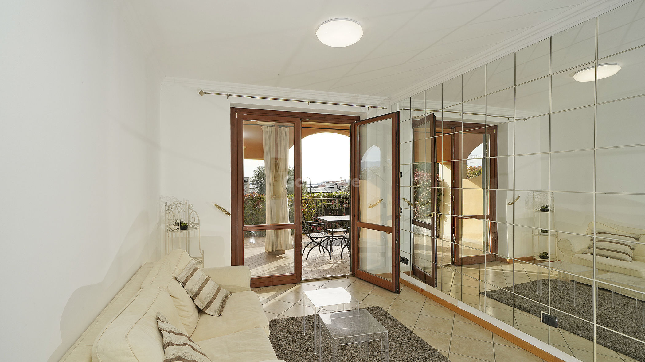 L'ingresso si apre sulla zona giorno openspace, composta da un angolo cottura e dalla zona relax, che accede direttamente al fantastico ed abitabile portico esclusivo, caratterizzato da un'ottima privacy. Questa zona esterna, con scorcio sul Lago di Garda, offre la possibilità di godere dell'aria e delle suggestive viste panoramiche. Inoltre, l'orientamento verso sud garantisce luminosità per l'intera giornata.