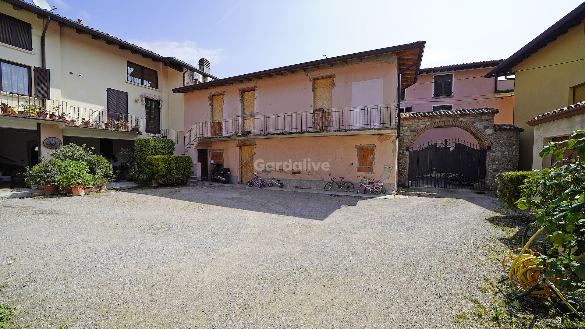La proprietà è completata da un’ampia corte interna, spazi accessori, portici e depositi che garantiscono ulteriore flessibilità e possibilità di valorizzazione