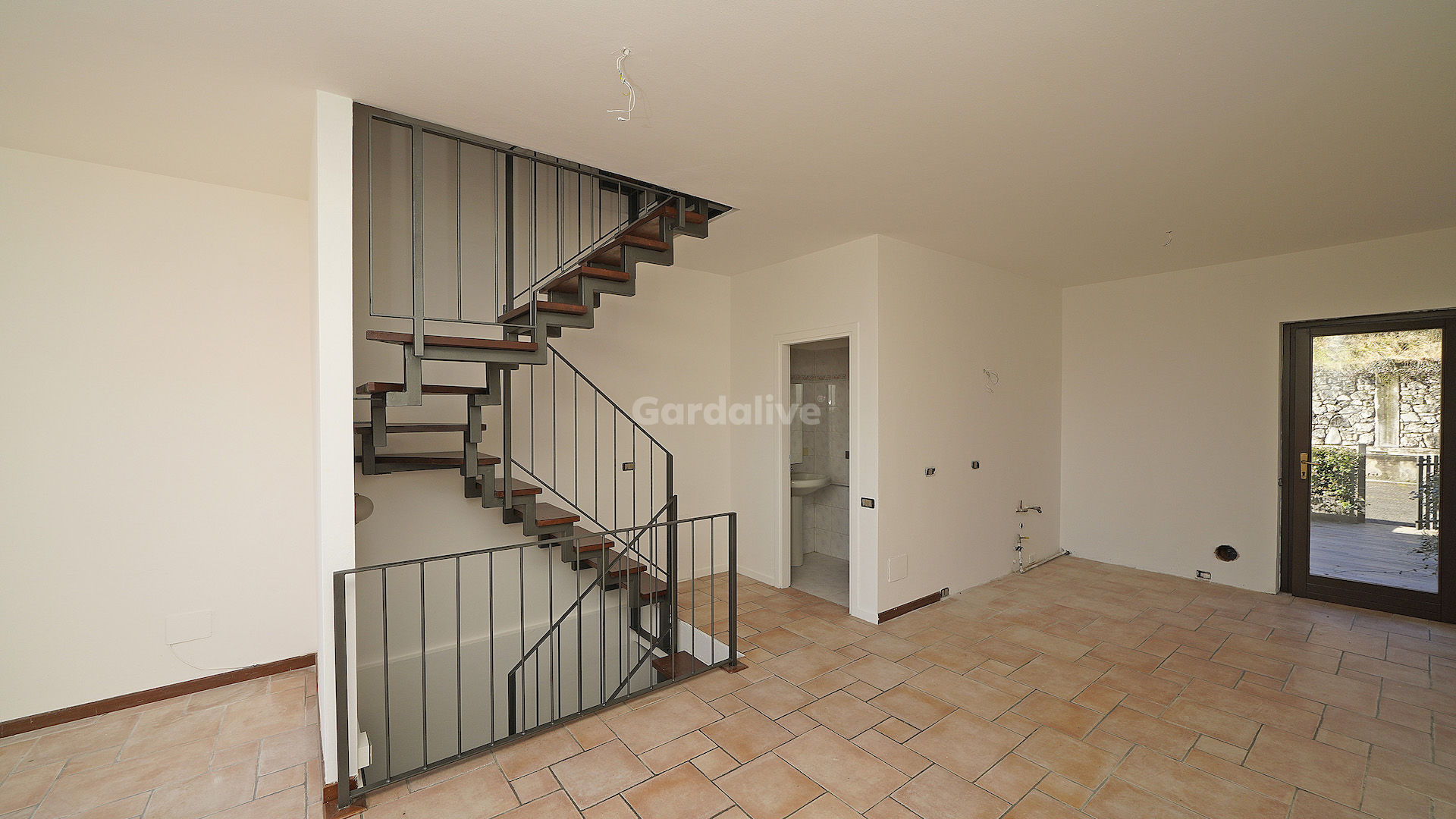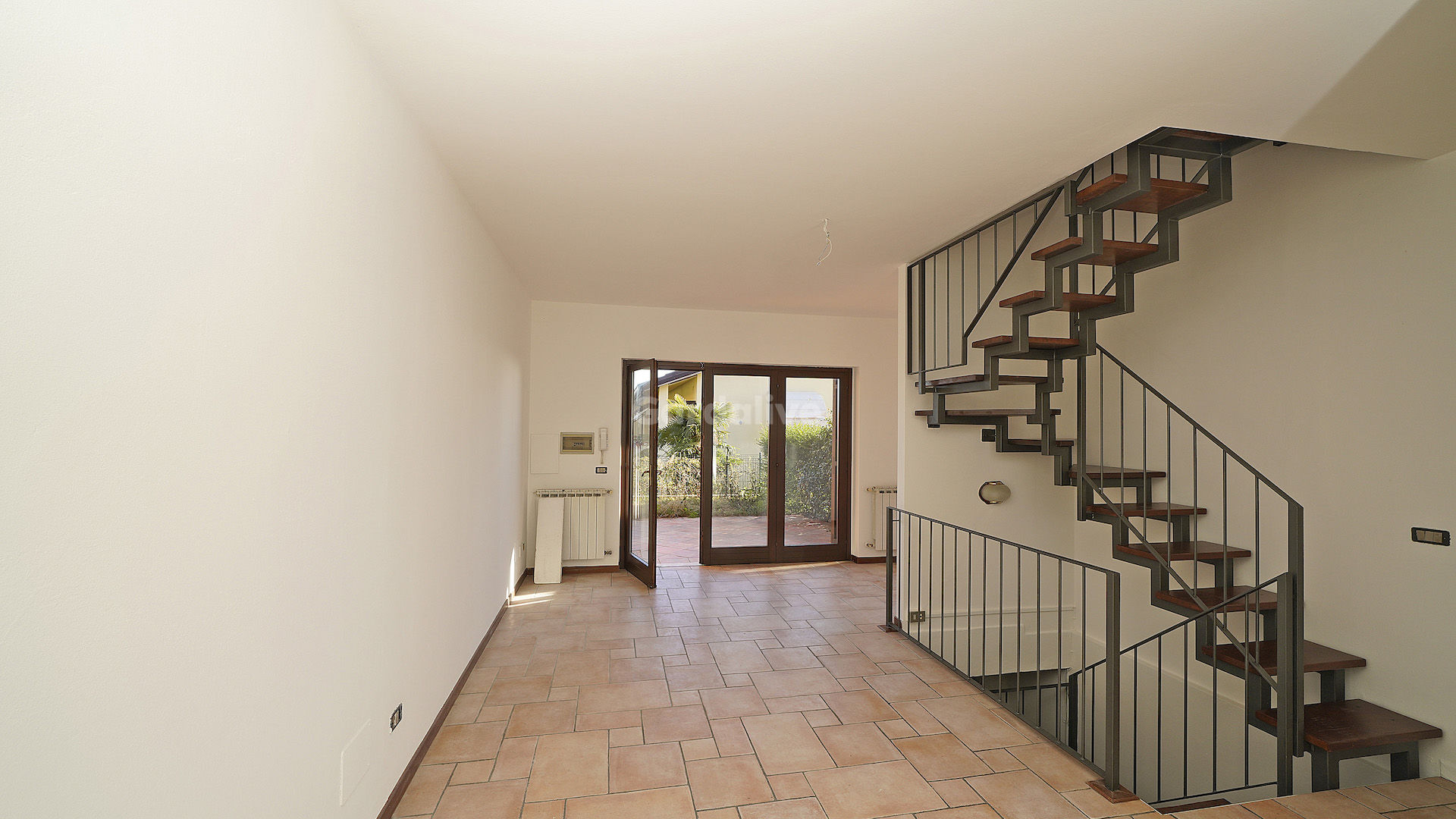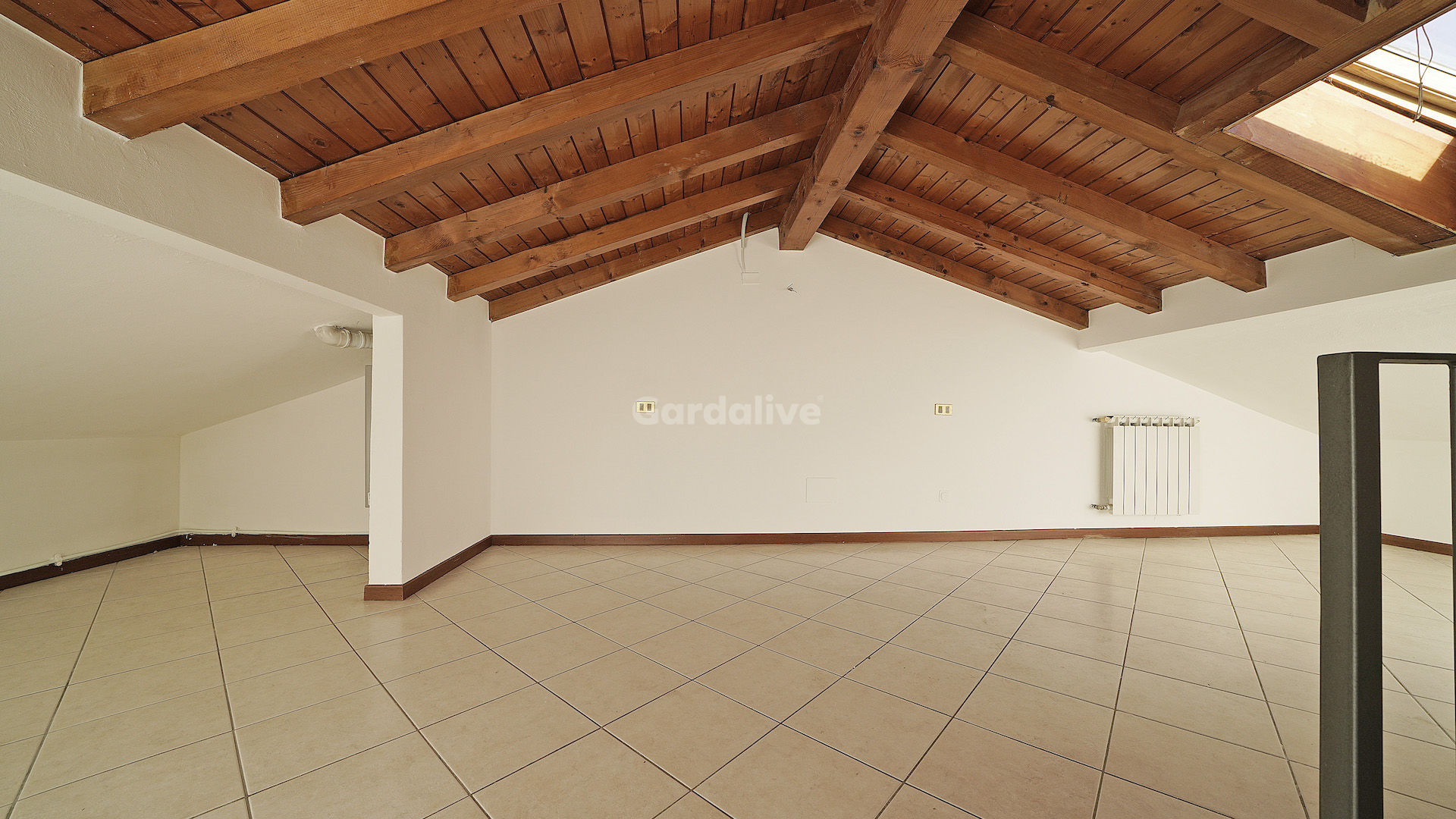 All'interno del residence Borgo Alto, proponiamo in vendita villetta a schiera con vista lago. Al piano terra troviamo l'ingresso nella zona giorno ampia e luminosa con la parete cucina ed il bagno di servizio. L’ambiente è reso molto arioso grazie alla presenza della porta finestra che permette l’accesso al portico con giardino privato. Al primo piano troviamo la zona notte con due camere matrimoniali di buone metrature e balcone dal quale si può vedere il lago ed un bagno con vasca. Salendo al livello superiore si sviluppa una mansarda adibita ad ulteriore camera matrimoniale. Nell'interrato troviamo infine una grande taverna ed un ulteriore locale attualmente utilizzato come camera.