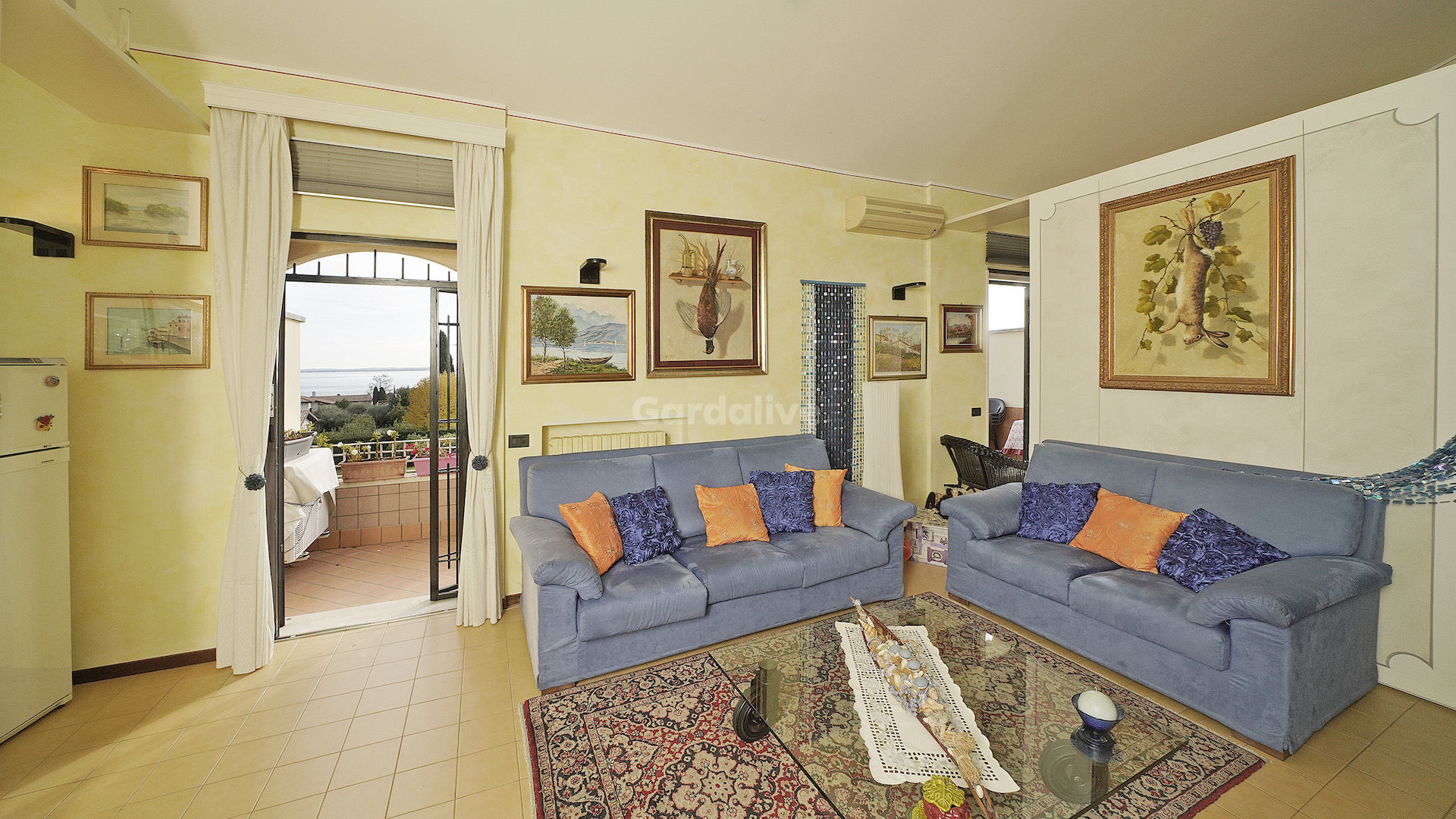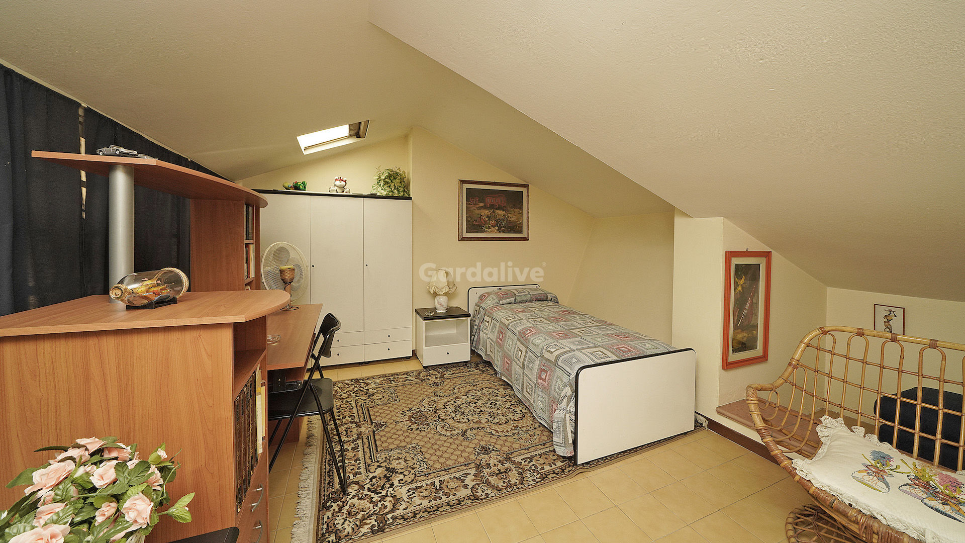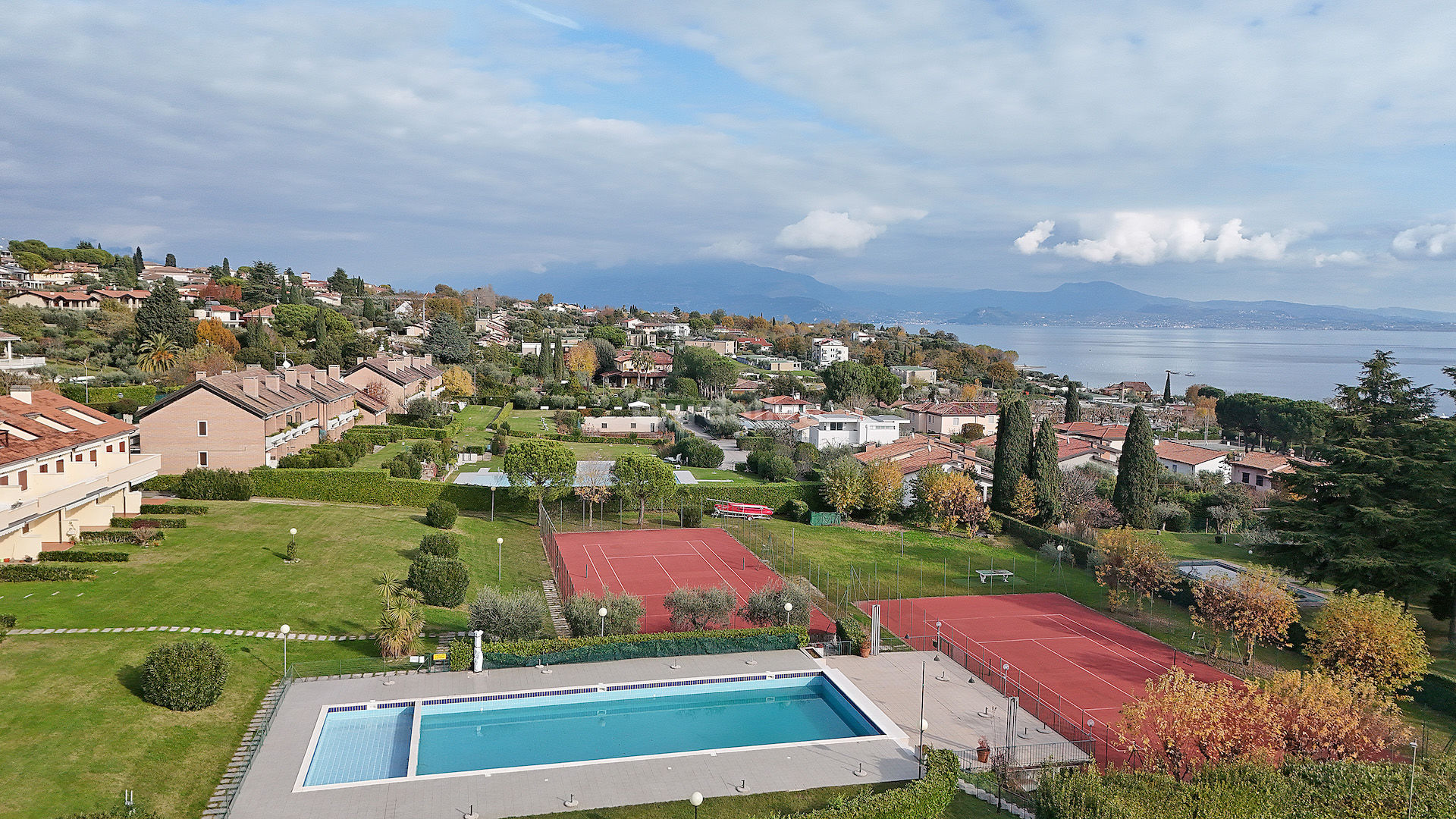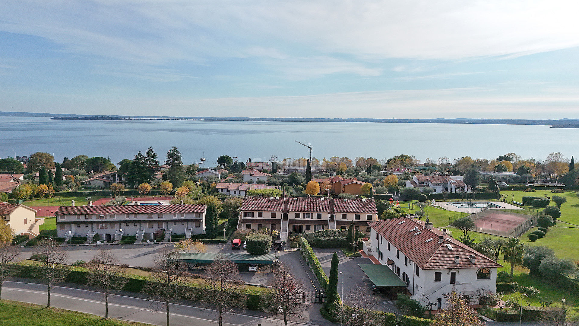 In un prestigioso complesso residenziale con vista lago, piscina immersa nel verde e campi da tennis, situato a pochi passi dal porto e dalla spiaggia di Moniga, proponiamo in vendita un appartamento al primo e ultimo piano con grande terrazza panoramica dalla quale godere della bellissima vista lago. L’abitazione è raggiungibile tramite scala esterna e si apre su una luminosa zona living, affiancata da una cucina separata abitabile. La disposizione interna comprende anche due locali ad uso disbrigo, una camera matrimoniale di ampie dimensioni e due bagni con doccia. Attraverso la scala interna si accede ai due soppalchi, dove troviamo due locali attualmente adibiti e camere da letto, ideali per ospiti o famiglia.