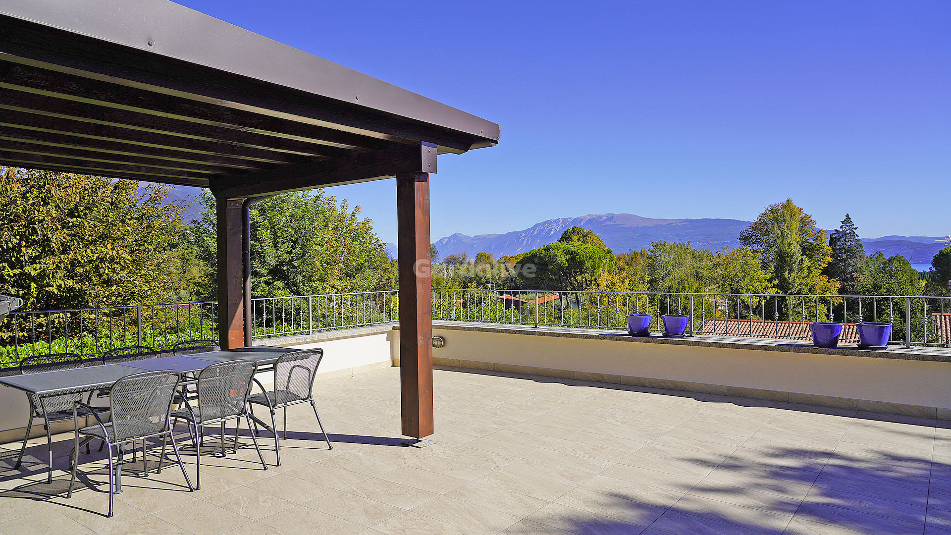 Pratiche scale interne in legno conducono alla fantastica terrazza abitabile con scorci di vista lago, contraddistinta da un pergolato, dove poter godersi le calde serate estive in relax o in compagnia di amici.