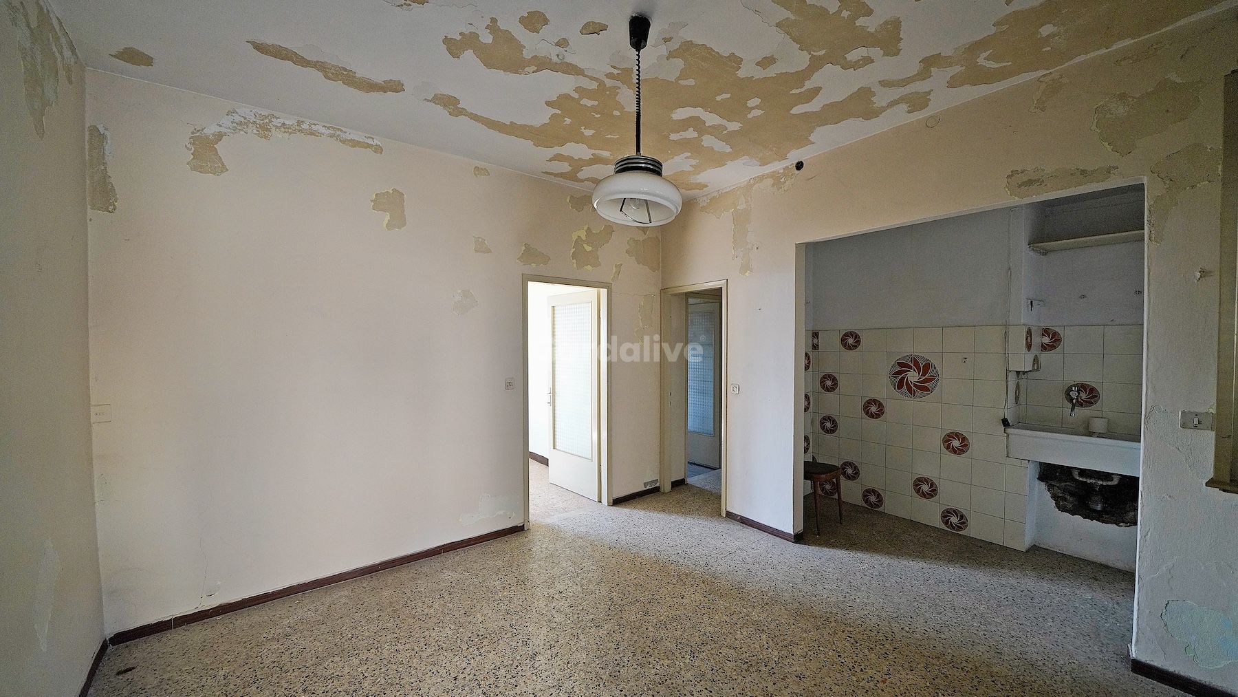 La seconda unità, proposta a € 67.000,00, ospita al piano terra una zona giorno con cucina e soggiorno, mentre al piano superiore si trovano due camere.